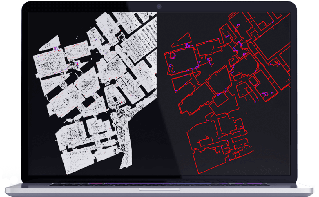 Обработка сырых облаков точек, векторизация сечений облаков точек, прямые измерения на сечениях, интеллектуальная обработка данных сечений, локальный поиск топологии поверхностей и элементарных геометрических форм по сечениям облаков точек, реконструкция форм объектов по сечениям — на базе полностью автоматических и автоматизированных алгоритмов с использованием методов искусственного интеллекта. Основой модуля является алгоритм векторизации сечений, автоматически связывать распознанное в единую логическую структуру, анализировать ее. Новый функционал для построения контуров поэтажных планов.